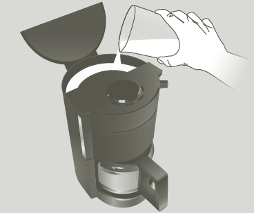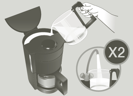 2 – Raztopino nalijte v posodo za vodo (brez kave)