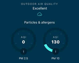 - Delci in alergeni: ta del prikazuje informacije o delcih (PM2.5 in PM10).