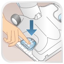 Preden napravo vklopite, tableto namestite na ustrezno mesto in dodajte kapljico eteričnega olja (uporabite največ eno kapljico eteričnega olja na tableto na teden) neposredno na tableto (pri tem bodite pazljivi in na tableto ne kapnite prevelike količine olja). Nato ponovno zaprite pokrovček.