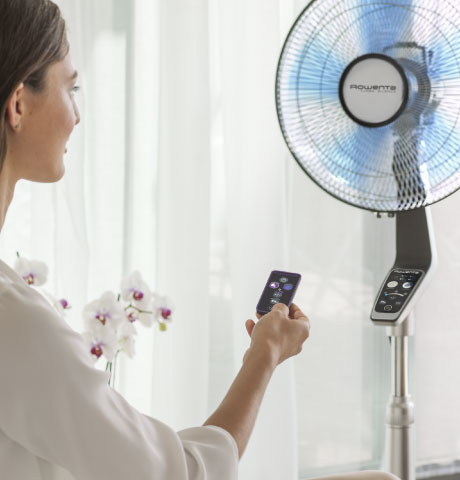 Rowenta has worked on this combination to design a range of Turbo Silence fans. Equipped with a 70 watt motor and a propeller, 40cm in diameter, they offer an air flow able to reach up to 80 m3/minute. With such an air flow, they are effective even in the most spacious of rooms. The automatic oscillation function as well as the four speeds allows you to regulate the fan according to your needs and the area you wish to cool down.